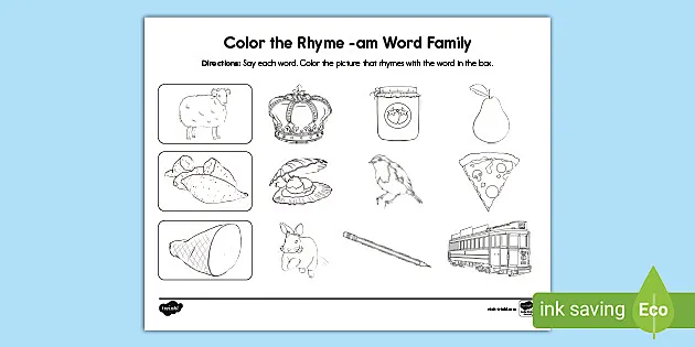 Any letter any letters consonant vowel. Word families sometimes called phonograms or chunks can he. A few activities like circle the rhyming word match-up coloring rhymes and other such rhyming exercises etc.